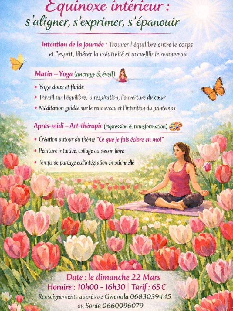 Prévoyez une tenue confortable et laissez cette journée inspirante et apaisante vous accompagner en douceur.